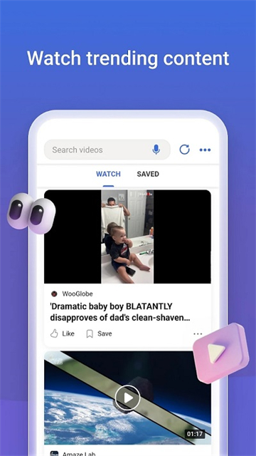 2、【全球搜索】漫画、视频等海量资源一键直达,满足多样化内容需求,搜索全球信息更智能、更纯净。