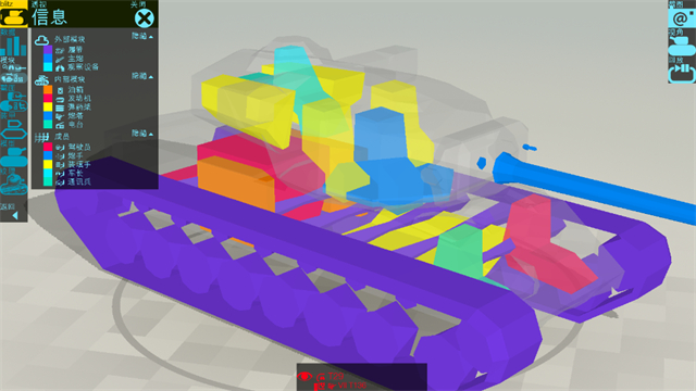 3D展示坦克内部模块与成员的位置