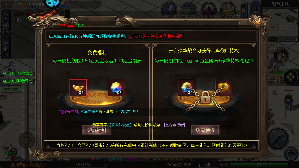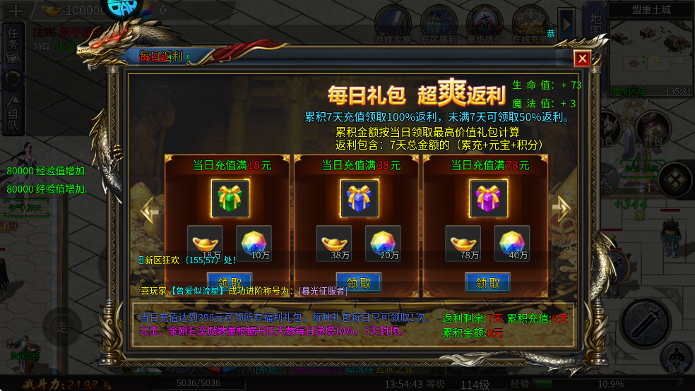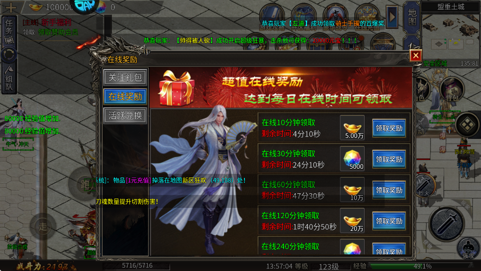 游戏世界地图广阔无垠,包含多个风格迥异的大陆,每个大陆都有其独特的故事和挑战,等待着勇者们去揭开它们的秘密。全新的奖励体系覆盖游戏的每一个角落,无论是探索未知地域、完成艰巨任务还是挑战强大BOSS,都有丰厚的奖励等着你,助你在称霸路上一往无前。