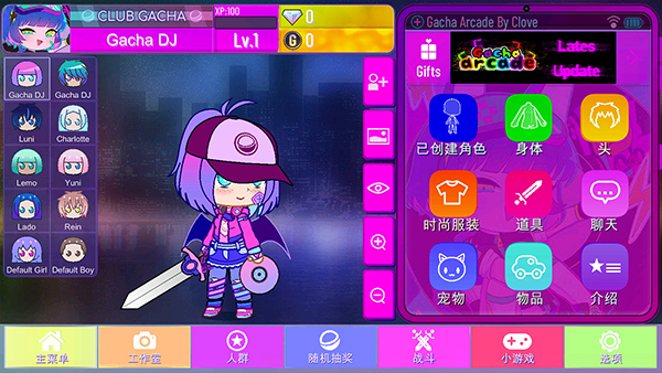 加查街机(Gacha Arcade)是一款由Nyx基于gacha club开发的换装角色扮演游戏,相比官版gacha club而言,加查街机在其基础上新增了数套玩具熊的五夜后宫中的服饰装扮,其中包括Freddy Fazzbear、Chicken Girl等面具以及血泪、全黑眼等等恐怖妆容,还有数张额外背景供玩家选择。非常适合玩家用此来创建恐怖故事场景动画。而除此之外主要玩法与gacha club基本一致,玩家在游戏内可以创建出自己的专属小人,并或是小人进行地牢探索冒险等各种官方提供的小游戏,或是在工作室内发挥自己的脑洞,创造一段趣味动画。感兴趣的玩家们不容错过,快来本站下载开始游玩吧。