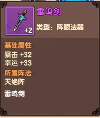 雷鸣剑:天绝阵的阵眼法器之一,提供暴击,幸运属性