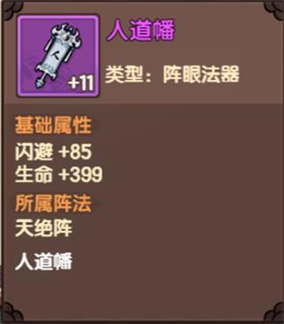 人道幡:天绝阵的阵眼法器之一,提供闪避,生命属性