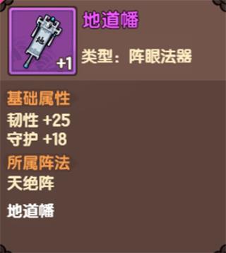地道幡:天绝阵的阵眼法器之一,提供韧性,守护属性