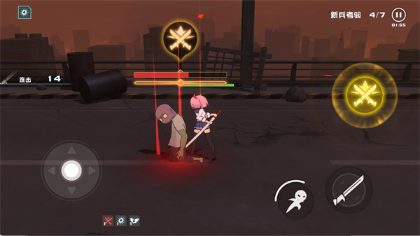 3、点击攻击按键可发动攻击,配合闪避键可打出不一样的操作