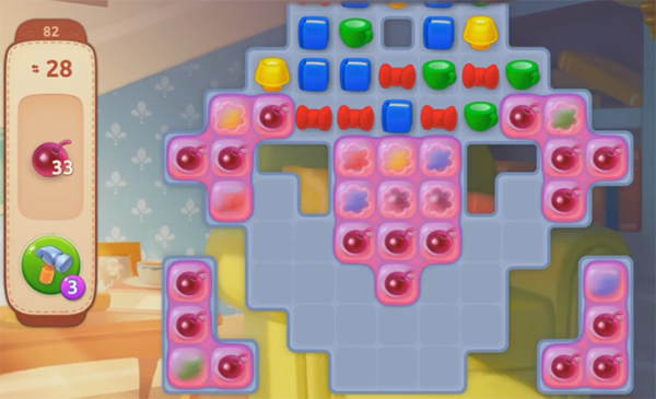 1、前期快速打开棋盘中间的果冻,形成更多的可以合成道具的机会。