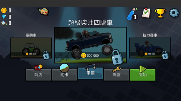 对于新手来说,拉力赛车是个不错的选择,因为它底盘低、速度快且稳定,适合各种探险地图。如果你想尝试更多高级玩法,可以考虑怪物卡车或超级柴油车,但需要掌握好落地角度和时机。独轮车则更适合娱乐,虽然容易翻车,但在某些地图中能跑出惊人速度。
