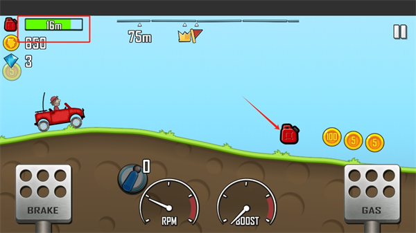 5、游戏没有尽头你需要一往无前的往前冲,如果没油了或者翻车了那游戏就结束啦