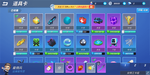 雇佣兵:能量剑,雷达,滑板,魔法墙,战术捣蛋(锁中间三个)