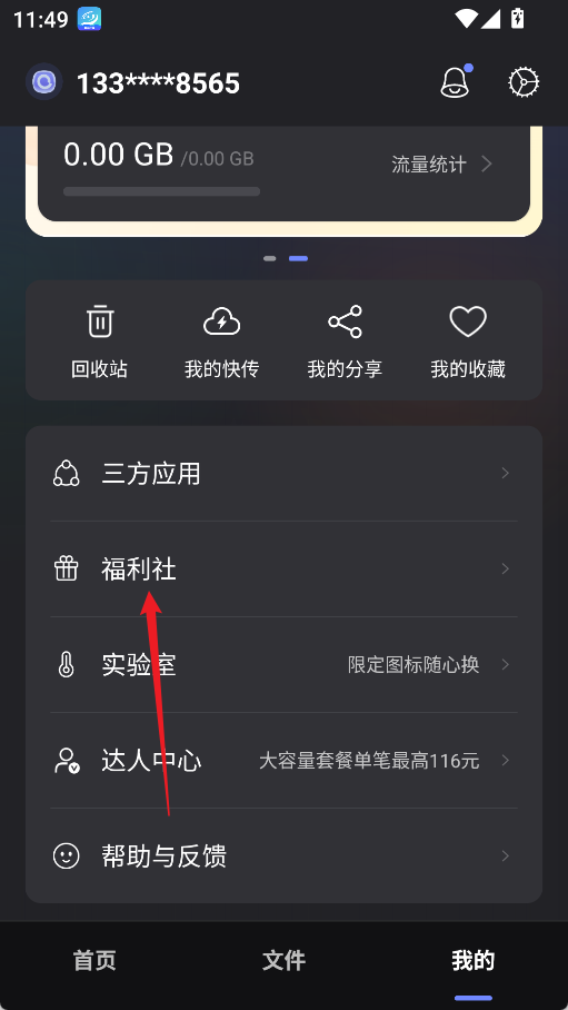 2、在我的选项中点击福利社选项