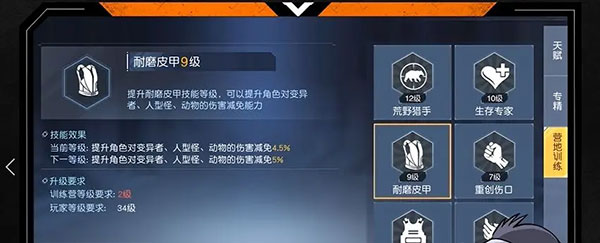 除了常规技能与专精技能,营地训练也能为幸存者带来战力加成。
