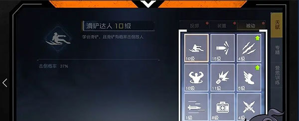 游戏的技能系统分为常规技能、专精技能和营地训练三种类型。常规技能包括投掷、装置和被动技能,能提升战斗能力;专精技能则解锁重型武器,并附带额外被动效果;营地训练通过贡献值获取被动技能加成。