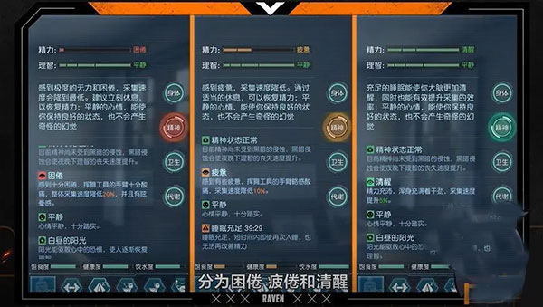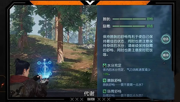 《黎明觉醒》设计了12项生存指标,包括体型、饥渴、健康、精力等等,与玩家的各类生存行为构成了完整的生存机制。