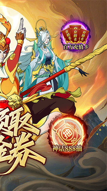 2、送神话888抽,至尊宝盒、SSR金色嫦娥、红色万神绘卷、充值券等你来抽!
