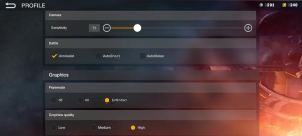 Graphics Quality是图形质量,也就是画质。根据自己的手机适当调节吧,反正我高通骁龙460开高画质能稳定在20-40帧之间。