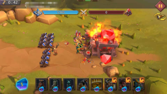 7-14:这个不好打,敌方边防塔攻击很高,但是他一次只能攻击一个目标,在后方放置防御塔,慢慢积攒魔力,大概在1分钟20秒到1分钟30秒之间,积攒魔力有90左右,直接放置骑兵,后方放置“火焰车队”。记住骑兵是炮灰,当敌方英雄靠近的时候,放置“重斧猎首队”来攻击它,炮灰不要一次放太多,快阵亡了在放下一波,不然地方英雄会一打死一片,导致后面魔力不够。不要停歇,一鼓作气直接打到最后。