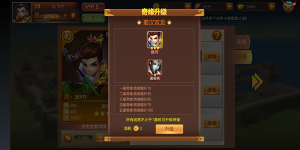奇缘是每个武将都有三个奇缘,激活奇缘可增加属性。奇缘是按照每个武将的星级来提升奇缘星级的哦,星级越高属性就增加越高!