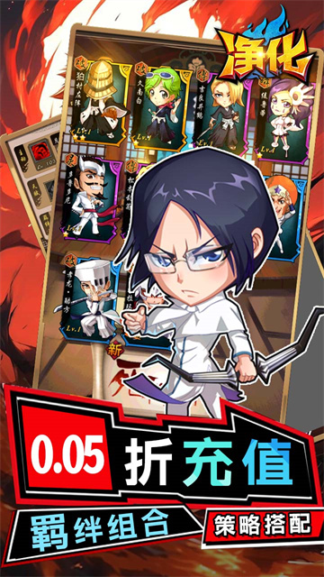 净化是一款以日本知名动漫死神为背景的卡牌手游,游戏采用了经典的日系二次元风格,顶尖的艺术设计打造,带来了高清细致的画面质感,让玩家享受一场精彩纷呈的热血梦境。同时,游戏高度还原了动漫中的经典场景和人物角色,拥有超强的动漫明星阵容,为我们带来了精彩无限的画面特效和各种热血激情的技能特效。