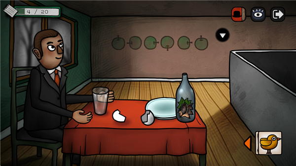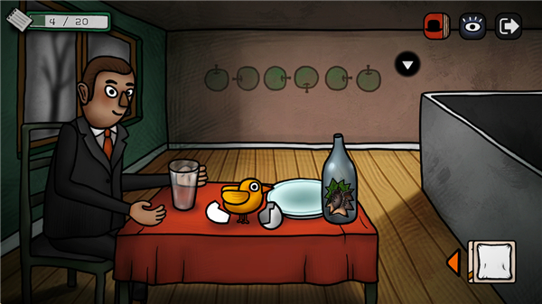 12、现在我们就可以点击桌子上的白布并获得它,同时桌子上的鸡蛋破损后有一只小鸡;