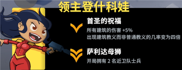 首圣的祝福:所有建筑的伤害+5%;出现建筑教义而非普通教义的几率变为四倍。