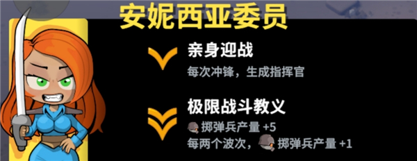 极限战斗教义:掷弹兵产量+5;每两个波次,掷弹兵产量+1。