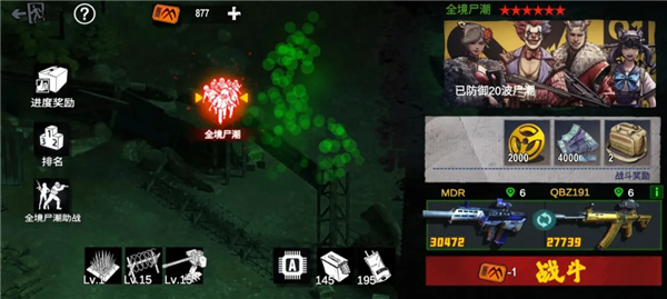 第三为全服奖励,根据本次尸潮全服最高波次,给全服所有玩家发放一份奖励,无论是否参与战斗均可获得。