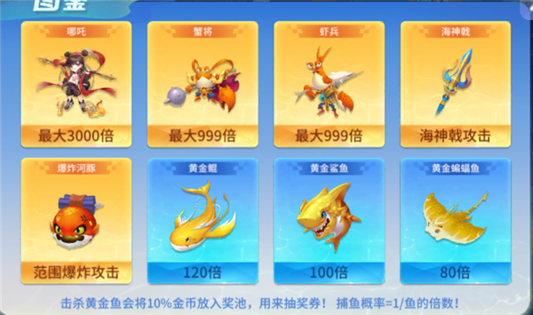 4、进入场景还是捕鱼,玩家可点击图鉴查看当前区域的鱼种;