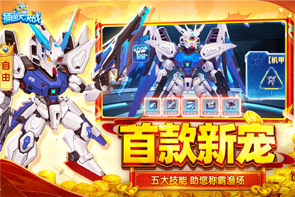 1、 全新机甲宠物【自由】震撼登场!宠物技能:机甲宠物【自由】携五大强力技能破局而至,助您称霸渔场!