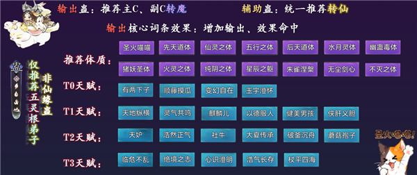 输出蛊、辅助蛊仅推荐五行灵根弟子。