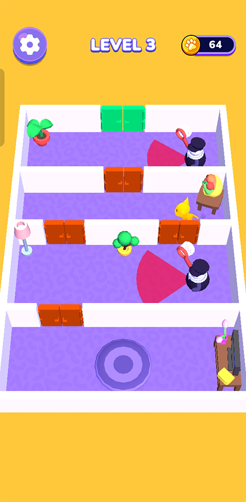 猫咪逃脱是一款充满迷宫般刺激的猫咪模拟器。在游戏中玩家将会化身为一只可爱的小猫咪,踏上一场充满未知与刺激的冒险之旅。在冒险旅途中我们需要躲避可恶的保安,以免被他们抓到,然后找到可以逃离的出口即可获得胜利。当然为了让玩家的游戏体验更为丰富的,游戏内还提供了丰富的道具,比如提供军火,让我们的小猫成为战斗猫咪,直接击晕保安。对此,有感兴趣的小伙伴欢迎下载体验。