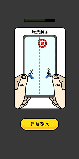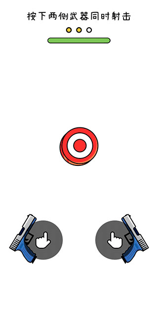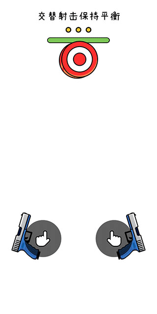 1、游戏的玩法非常简单,左右两侧各有一支枪,目标会从下往上出现,其运动轨迹就是屏幕中央的虚线