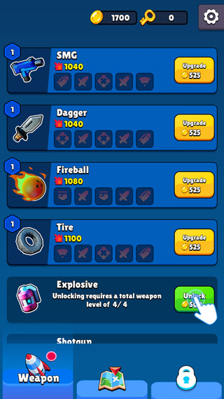 7、另外,游戏中获得的金币可用来在游戏主页升级武器和装备的攻击力,从而消灭更多的丧尸。