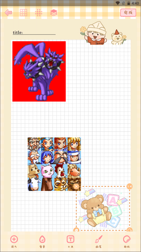 2、不同风格的可爱贴纸、背景与画笔素材等持续更新。