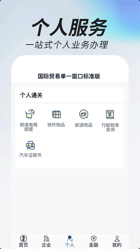 【贴心个人业务】支持快件个人物品、汽车证明书查询等个人通关业务,让个人通关业务轻松无忧。
