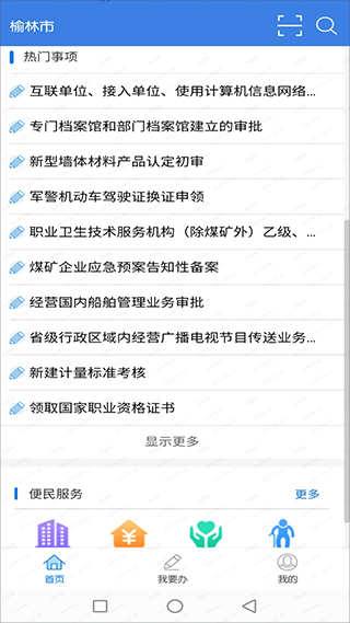 榆快办app是陕西榆林市政务服务中心推出的一款网上政务一站式办事软件,属于榆林政务app,软件打造了一个智慧服务平台,整合了榆林市各级各部门、行业行政权力、公共服务和便民服务资源,统一提供信息资源的连通和共享,让更多榆林人民享受互联网+政务服务带了的便利。