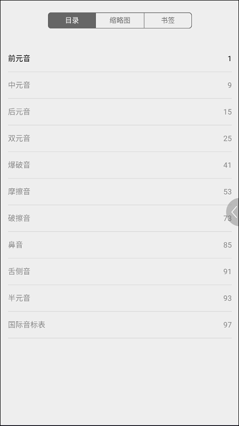 4、最后在这里能够看到具体的目录、缩微图和书签。