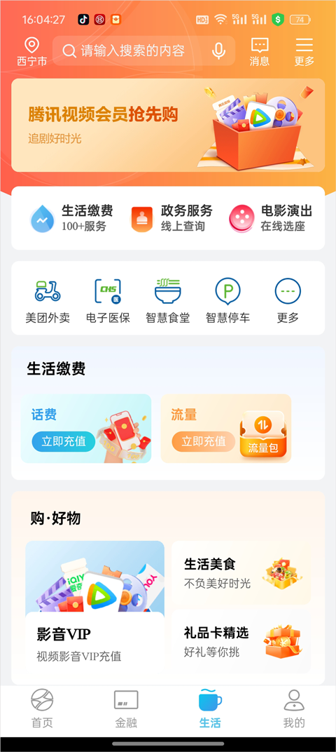 整合了日常生活中的高频服务功能,包括话费充值、水电燃气缴费、政务服务、电子医保等多项业务。