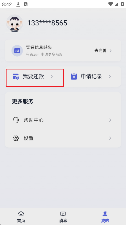 1、打开乐享借App,点击底部的“我的”进入个人中心;