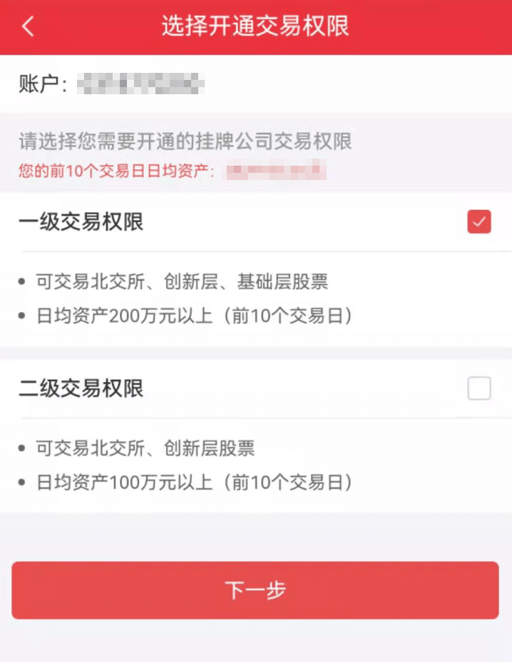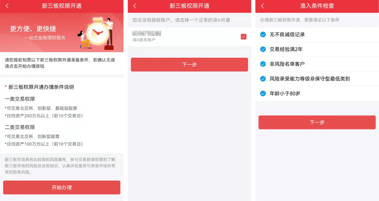 2.选择开通账户及准入条件检查