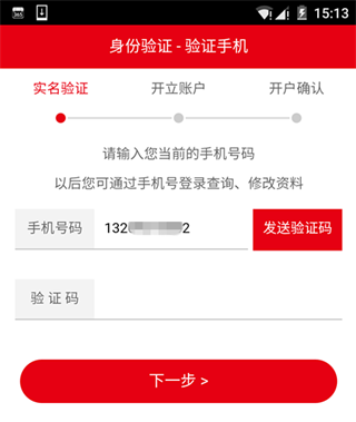 1.打开APP,验证手机号,获取验证码后选择开户营业部