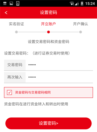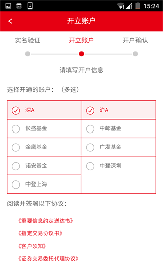 6.选择开通账户类型,签署协议并设置交易密码