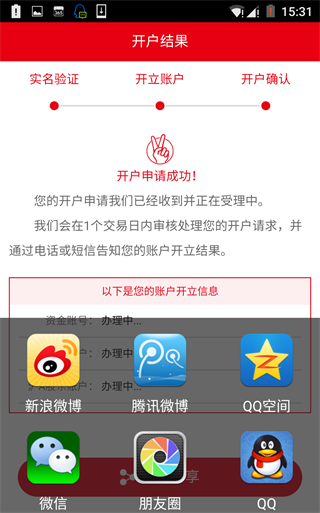 9.开户资料提交完成