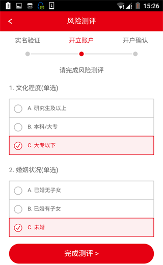 8.完成风险测评问卷及回访问卷