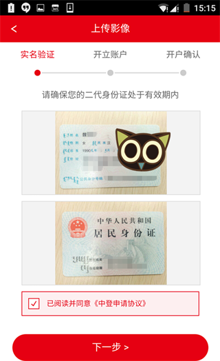2.上传身份证正反面照片(直接用手机拍照或上传手机相册里已有的身份证件照片皆可)