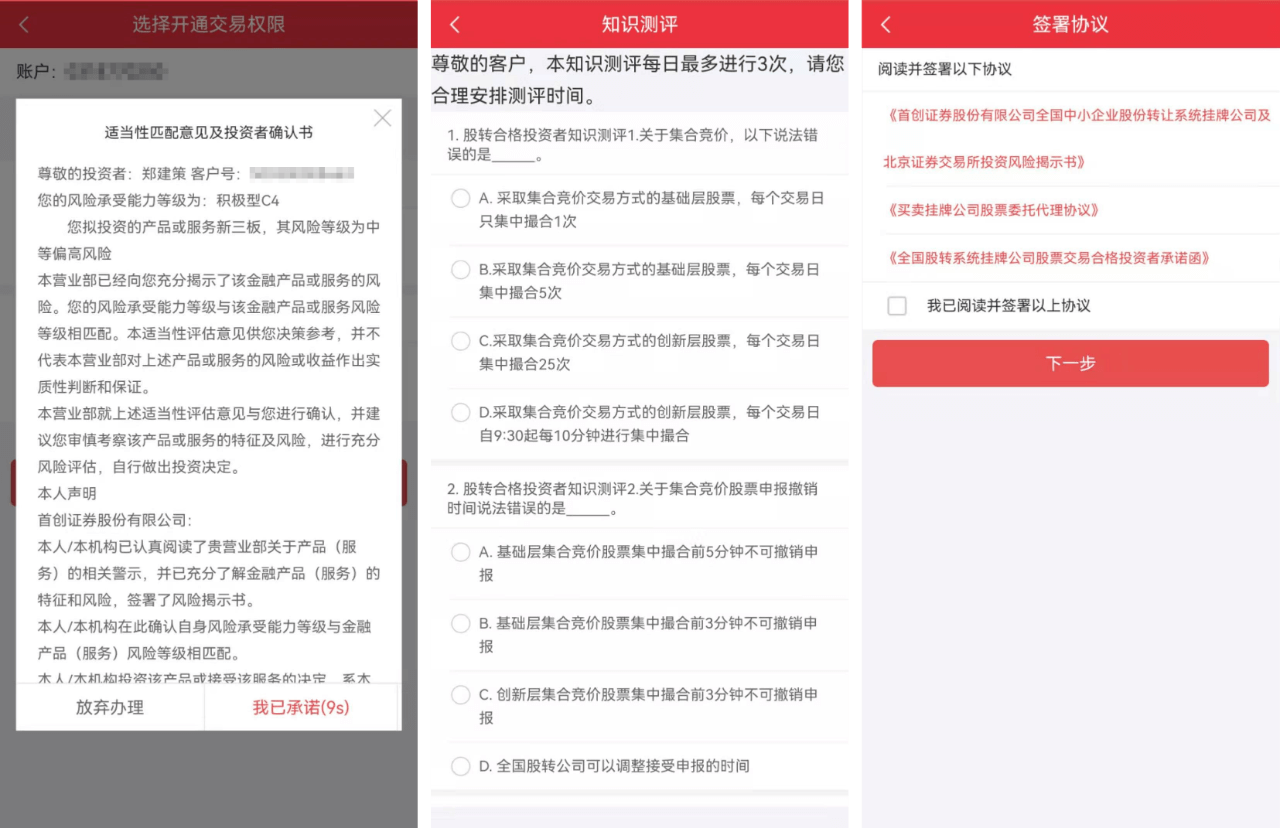 首创证券app新三板线上权限开通指南