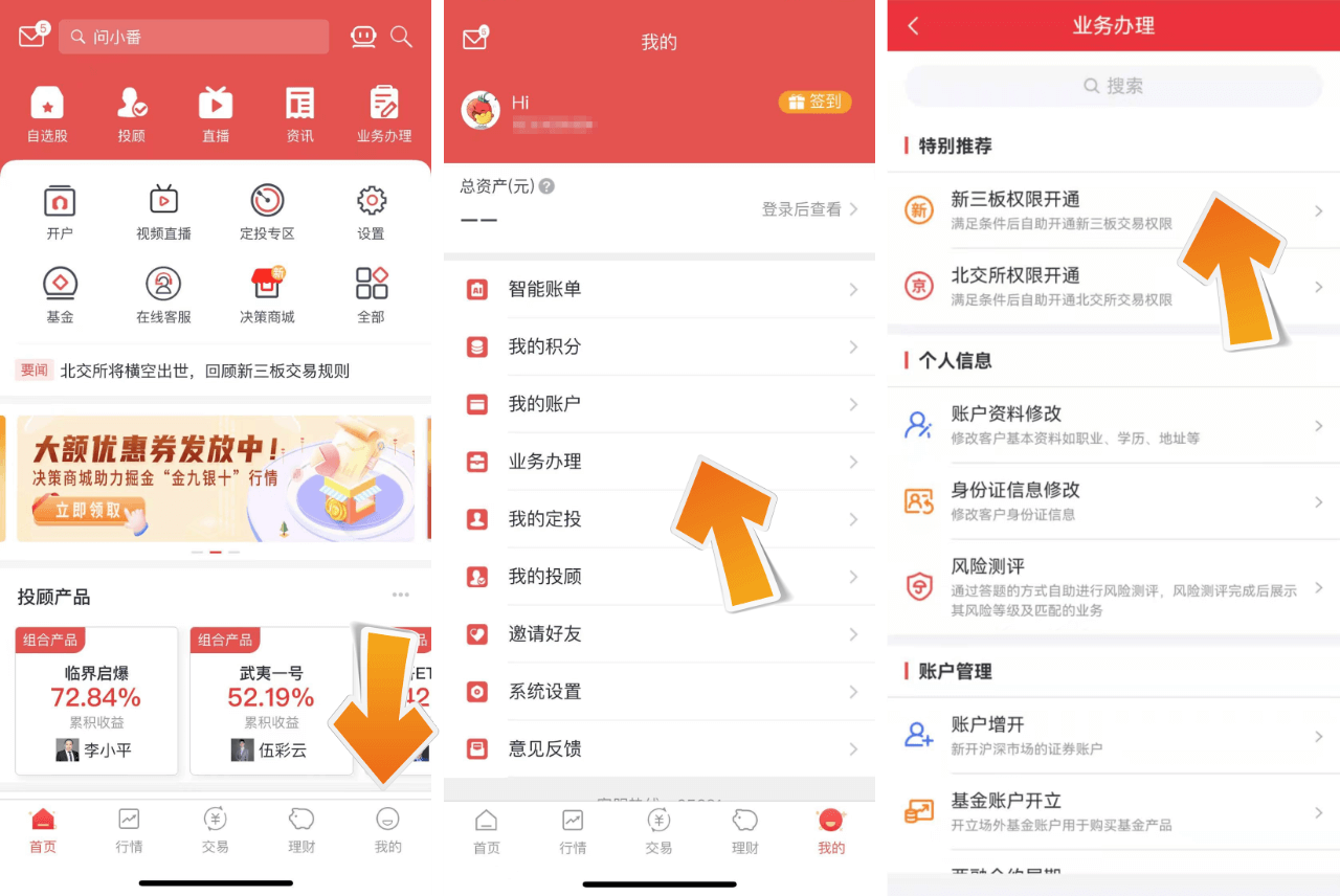 操作方式:首创番茄财富APP——我的——业务办理——新三板权限开通。