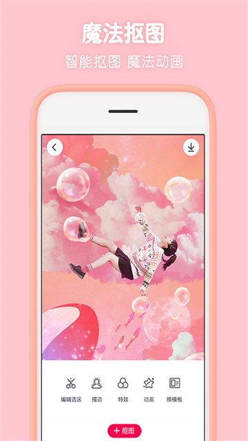 轻松抠图,创造独一无二的有趣照片。趣味场景,3D艺术效果,让你体验魔法般P图趣味。