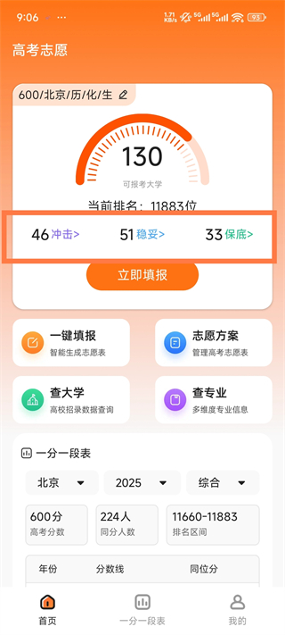 3、随后回到主页可以看到有【冲击、稳妥、保底】等板块