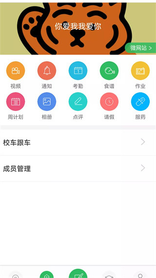 1、下载打开软件,在首页有着考勤,食谱,作业,相册,视频等功能;