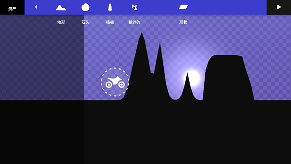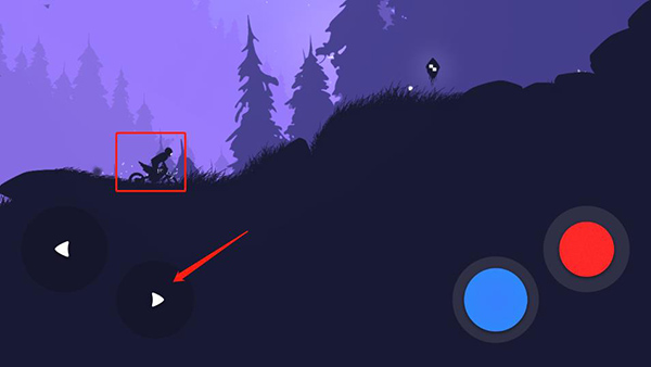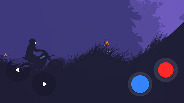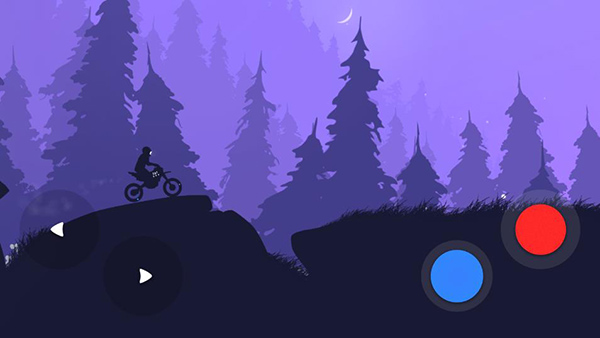 游戏采用了2D横版模式呈现,画面背景设置在了梦幻丛林之中,前景以黑色铺垫,仿佛相机曝光过度一样,只能看到黑色的路面以及车手,反而是远处的背景能看出姹紫嫣红的丛林风光,时而黄昏暗淡、时而明媚阳光、时而蓝色魅惑,让人感叹大自然的无穷魅力。相比喧嚣吵闹的都市而言,朦胧中的丛林风景仿佛更有韵味,这种温馨的感觉直暖人心,让人们放下所有的压力与拘谨,在大自然中肆无忌惮的玩乐;