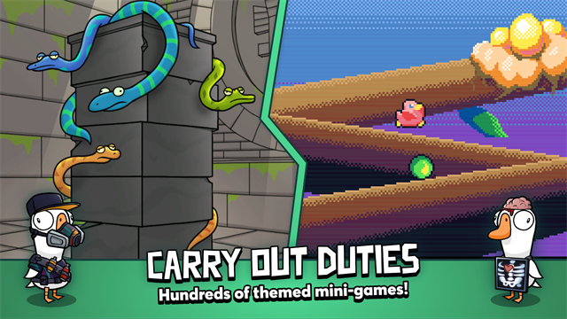 所有玩家中只有鸭子,他必须在计时器用完之前杀死所有的鹅。鹅可以通过完成各种不同的任务来减少计时器。活鹅任务完成将使计时器减少 4 秒,死鹅任务完成将使计时器减少 1 秒。您也可以躲避杀手鸭,让计时器用完来赢得比赛。